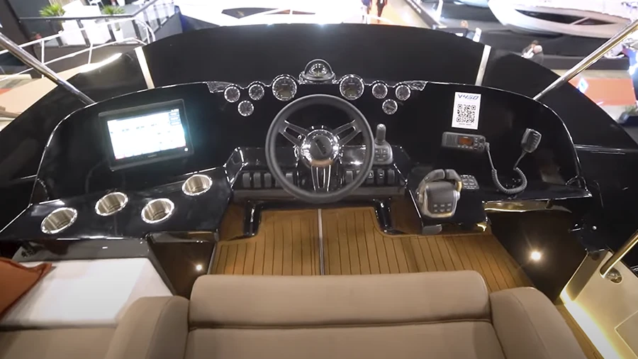 The Ventura V450 Flybridge version offers the ultimate memory-making yacht for a fun day out on the water. With its spaciousness, comfort, and performance in rough waters, it’s the perfect choice for families. Take in the breathtaking views from the flybridge, swim off the swim platform, entertain guests in the spacious interior salon, or rest in the luxurious stateroom. The yacht’s features include a sliding door with tempered glass and a stainless-steel frame that protects the cabin, a fully-equipped galley with a cooktop, sink, refrigerator, TV, and microwave, and a complete helm station with a GPS map and display. The cruiser’s handling is exceptional thanks to the Volvo Penta IPS system, which makes docking easy with its joystick and IPS pods, and ensures low sound levels.
